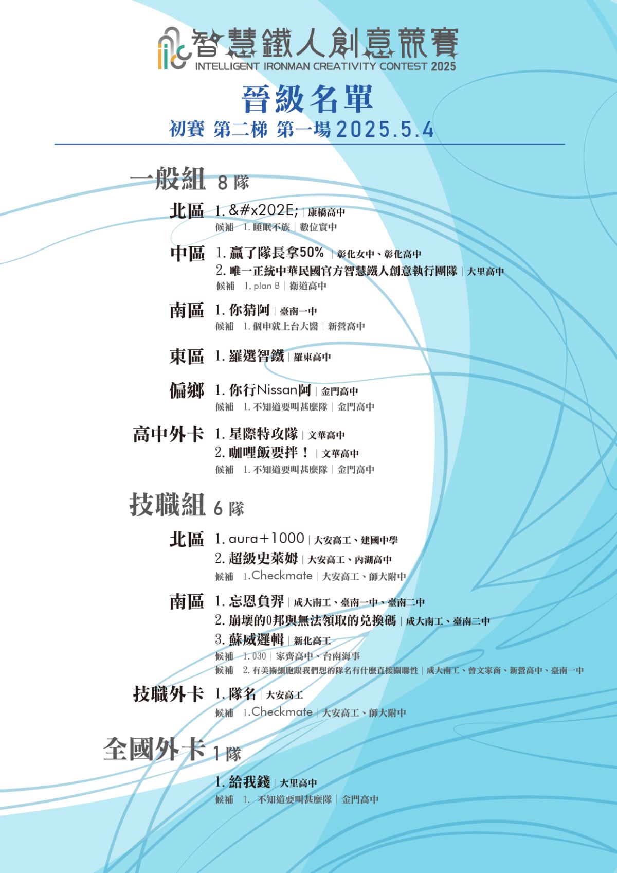 [智慧鐵人22屆複賽] 登記換梯與闖關順序抽籤公告