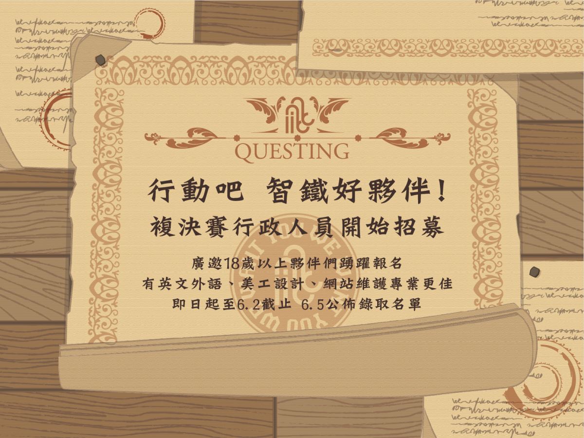 決賽行政人員(18名) (擅美工、有場佈經驗、英文專精優先錄取)